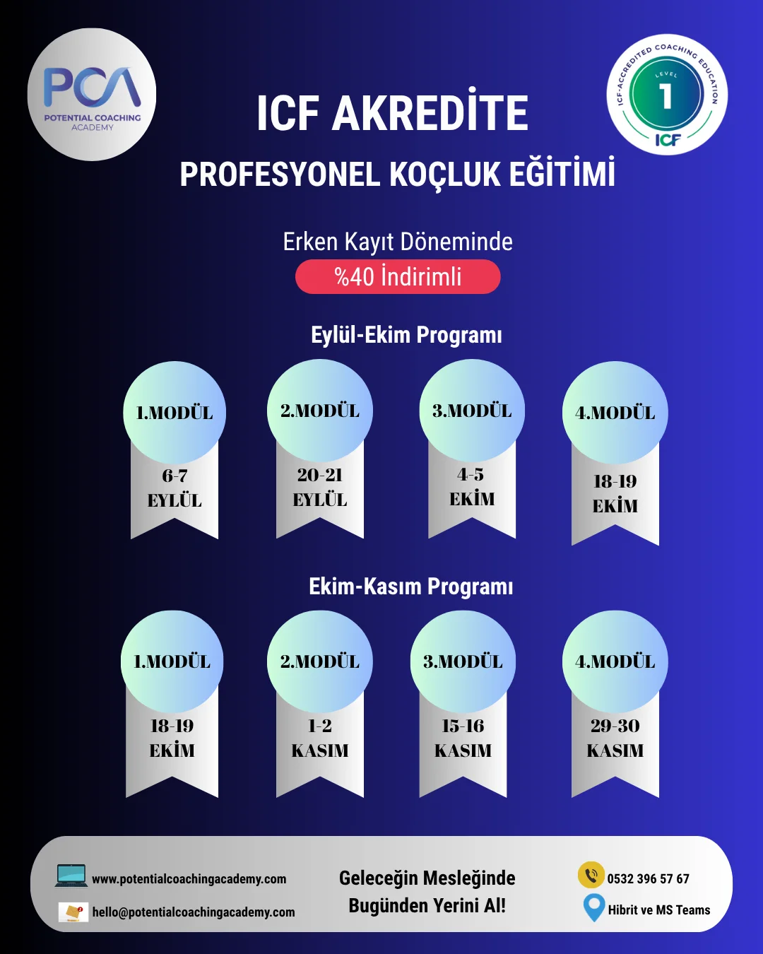 Bu program, koçluk yolculuğunuzun başlangıç noktasıdır. Amacımız, bu yolculukta size en güçlü koçluk araçlarını sunarak, kendinizi daha yakından tanımanızı ve keşfetmenizi desteklemektir.